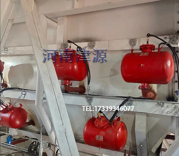 河南津源空气炮是把压缩空气炮(0.4-0.8MPa)冲入炮体内,由控制阀连接