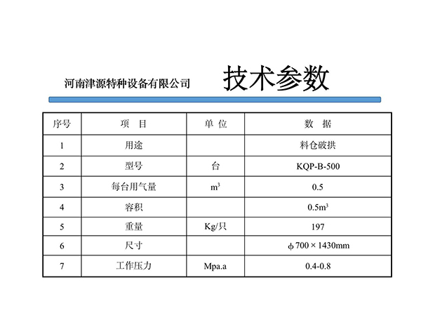 河南津源空气炮是把压缩空气炮(0.4-0.8MPa)冲入炮体内,由控制阀连接控制箱的按钮,让炮体内的压缩空气在0.15-0.02秒突然喷出,产生强大的冲击力,我们就是利用这种力来解决煤仓的堵塞、粘结。空气炮内部有缸套、活塞、活塞环等一套排放冲成,外面由电磁阀和控制柜控制使用,对料仓无破坏作用,而且噪音小、能量大、使用方便、维修简单。