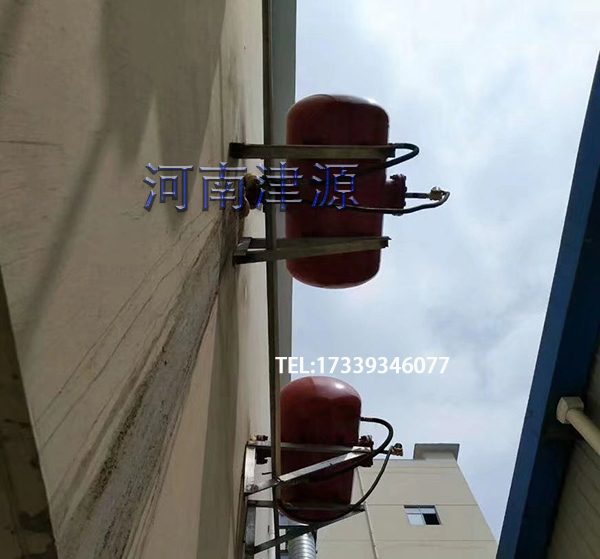 河南津源空气炮是把压缩空气炮(0.4-0.8MPa)冲入炮体内,